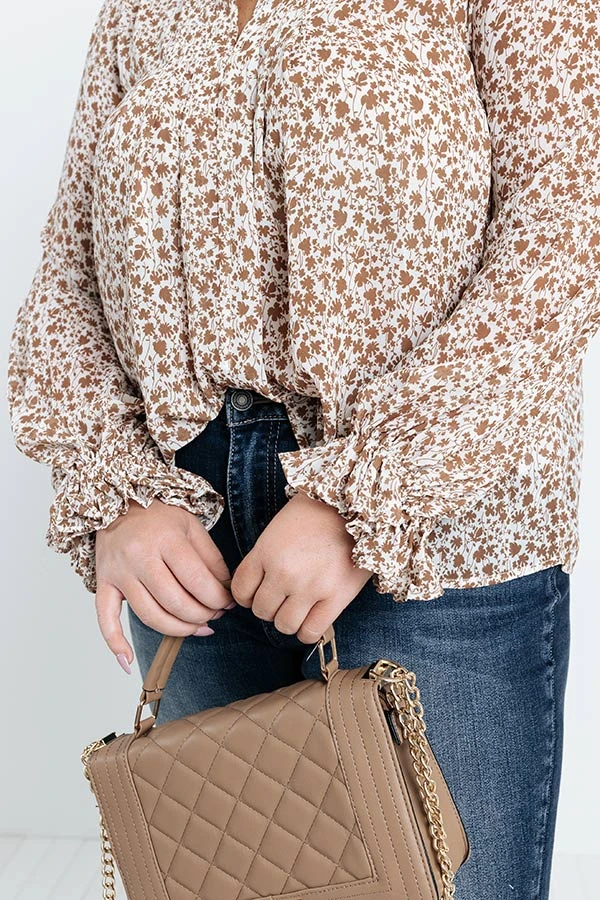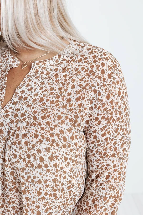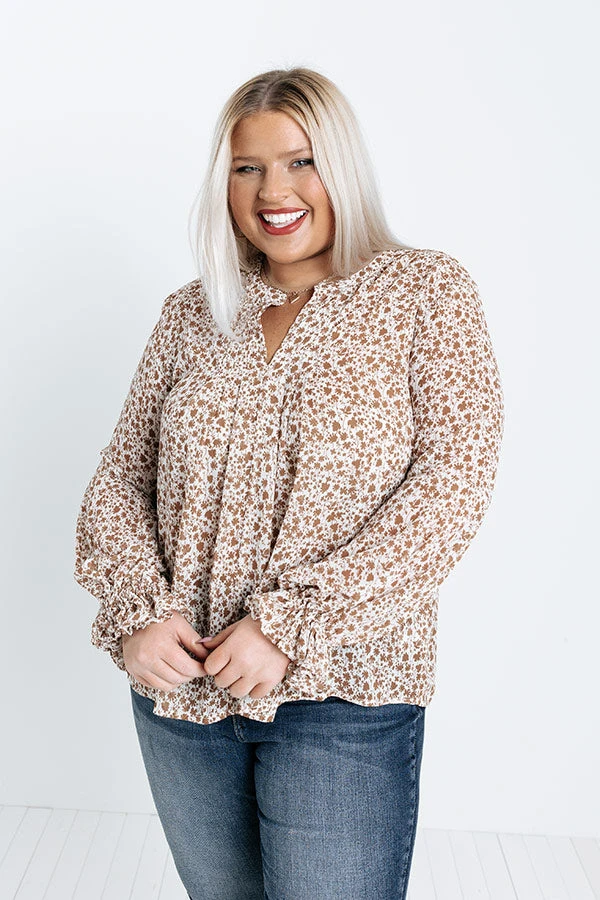 Dress like a true fashionista in our adorable plus size ‘Greatness Calling Shift Top’ featuring lightweight material patterned with a brown floral print, long loose bishop sleeves with ruffle cuffs, a v-cut neckline, and a relaxed silhouette that falls into a straight hemline!
