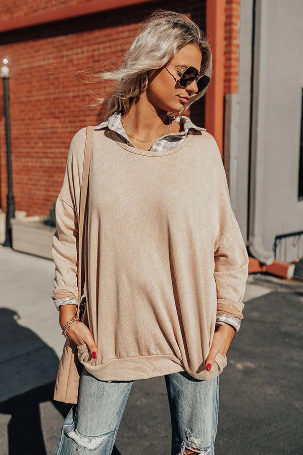 Stay comfy in our casual iced latte colored ‘Happy Outlook Sweatshirt’ featuring soft mineral wash material, a rounded neckline, long loose sleeves, low hidden side pockets, and a slouched silhouette that falls into a straight hemline!