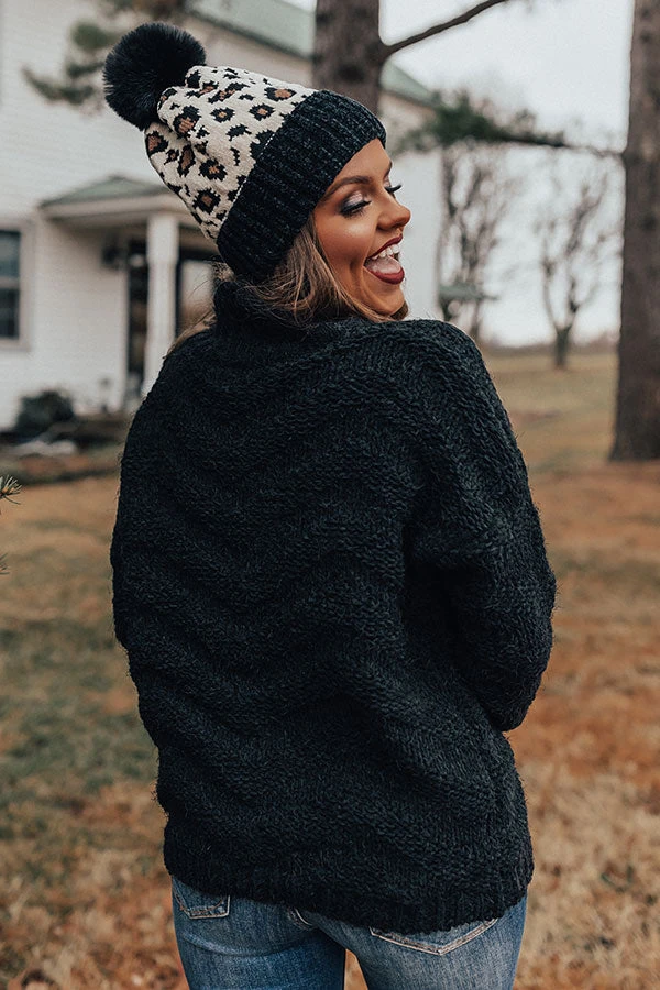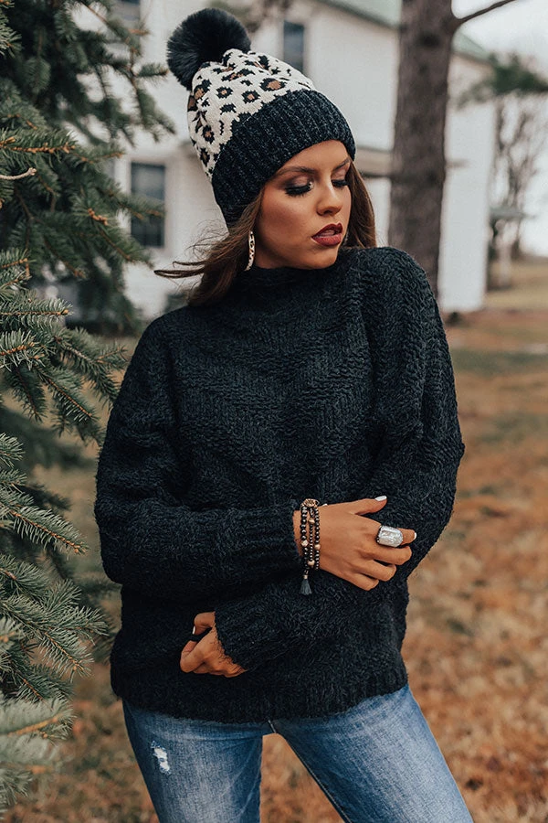 Give your cold weather wardrobe a chic update with our black “Humble Abode” knit sweater featuring soft lightweight material with a large chevron pattern, thick ribbed trim detailing, long loose sleeves with fitted cuffs, a high turtle neckline, and a relaxed silhouette that falls into a straight hemline! We have styled this warm and cozy piece with some distressed ankle skinnies, a leopard beanie, and black wedged booties, but you can also wear it with some charcoal flares, “The Brinkley Heel,” and our “Oh So Gorgeous Woven Crossbody in Wine!”