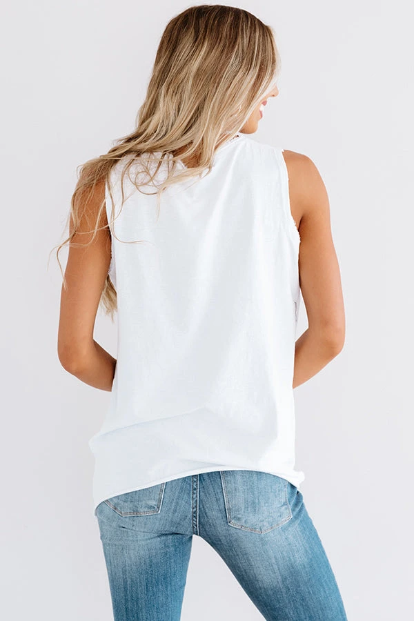 Reach for the stars in this adorable white shift top featuring soft lightweight material, a v-cut neckline, wide 3-inch sleeveless shoulder straps, subtle sequin accent stars on the chest, frayed trim detailing, and a relaxed silhouette that falls into a straight hemline! This versatile piece can be styled a variety of ways, like with some distressed ankle skinnies, matching mule heels, and an embellished clutch, or it can be layered under a jean jacket with some black shorts, “The Bellview Woven Flat in Pink,” and our matching pink “See You Soon Wool Hat!”