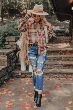 The Averie High Waist Distressed Straight Leg Jean In Latte Curves
