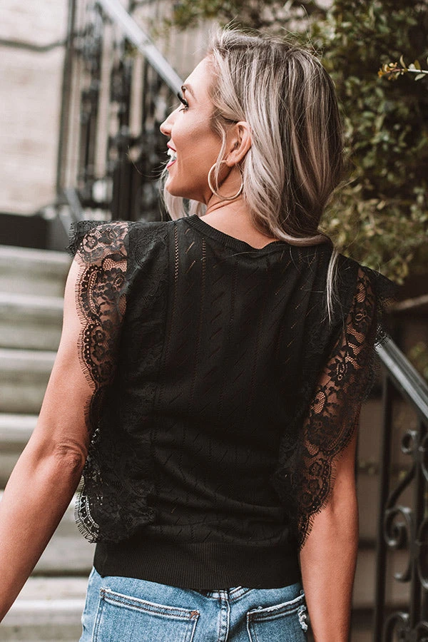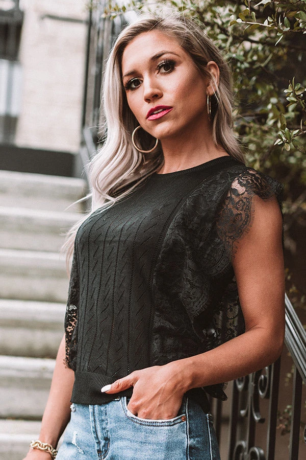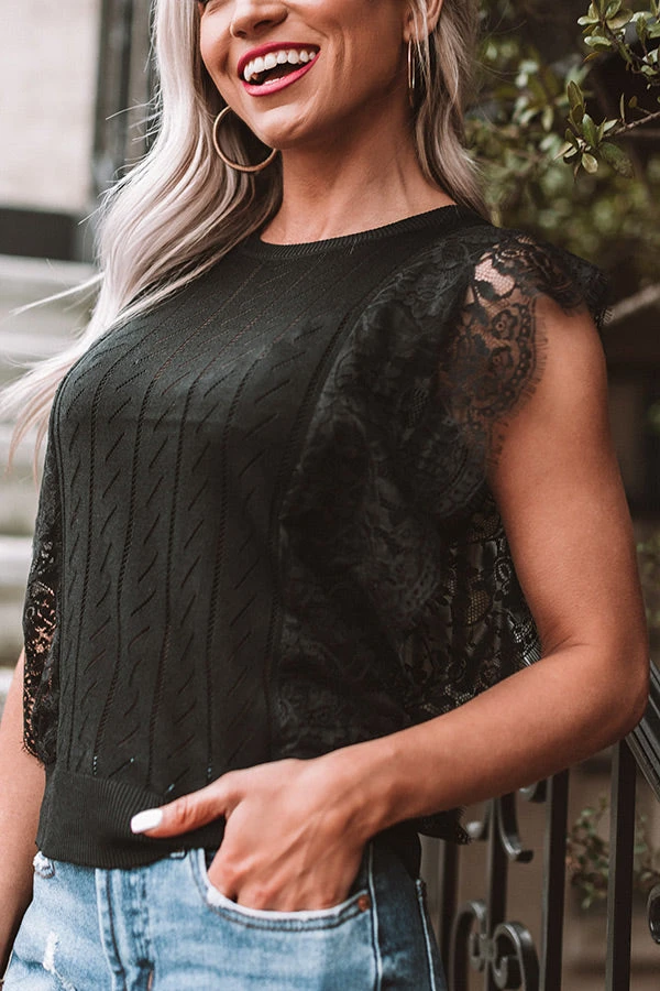 Remain classic in our dainty black “Seaside Spell” top featuring lightweight semi-sheer material, a high rounded neckline, wide shoulder straps with intricate lace panel overlays, and a relaxed silhouette that falls into a straight fitted hemline! This unique piece can be worn a variety of ways, like with some distressed ankle skinnies, red wedges, and a cheetah print clutch, but you can also wear it with layered under our “Adventure Abroad Blazer in Blush” with our “Grecian Getaway Trousers in Black” and “The Everly Patent Heel in Blush!”