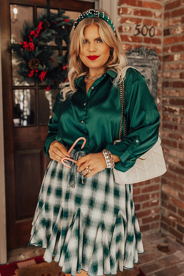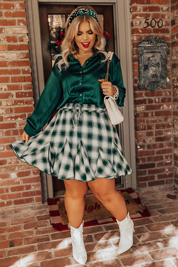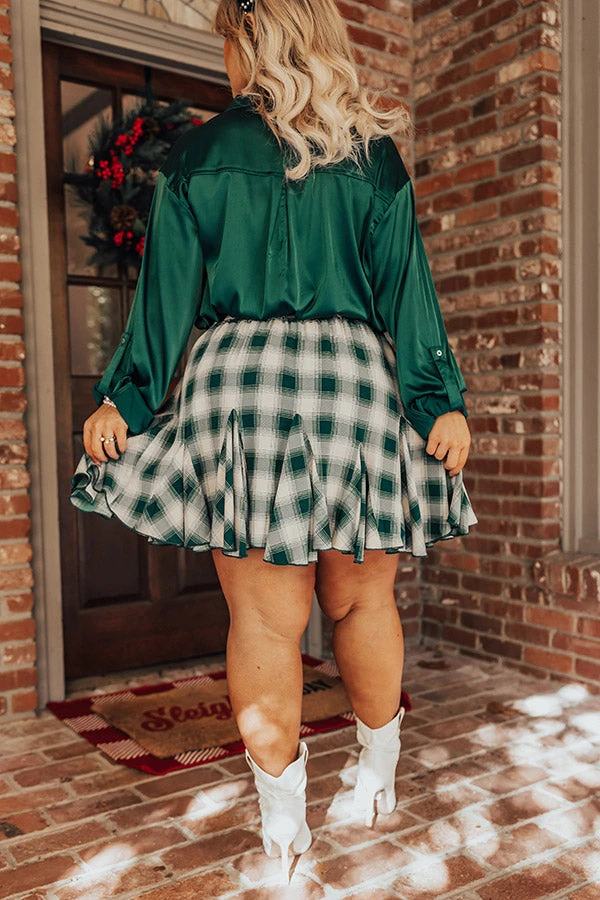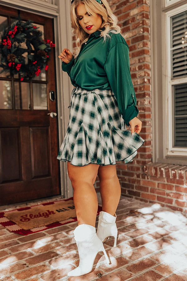 Get ready for a small town holiday celebration in this darling plus size skort featuring lightweight and flowy material patterned with a green and white checkered plaid print, an elastic waistline with a tie closure, and a relaxed silhouette that falls into a pleated upper-thigh length hemline!