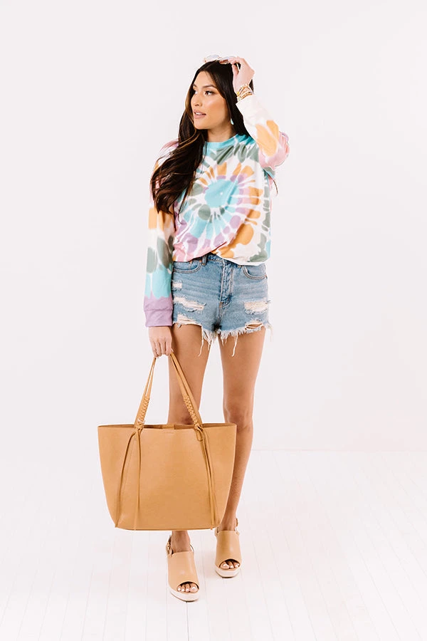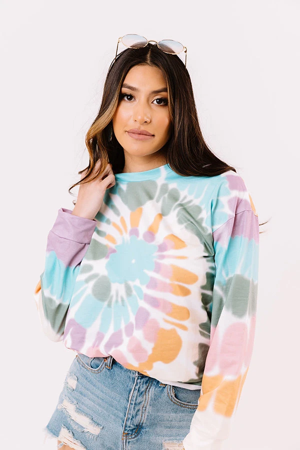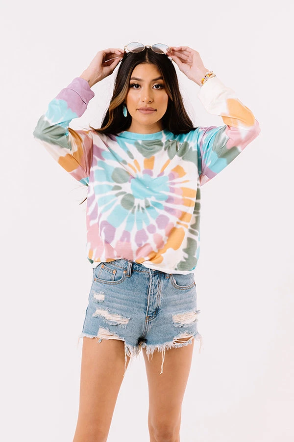 Stay kind AND stay stylish in this trendy sweater featuring soft lightweight material patterned with rainbow swirl tie due, a high rounded neckline, long loose sleeves with fitted cuffs, and a relaxed silhouette that falls into a straight hemline!