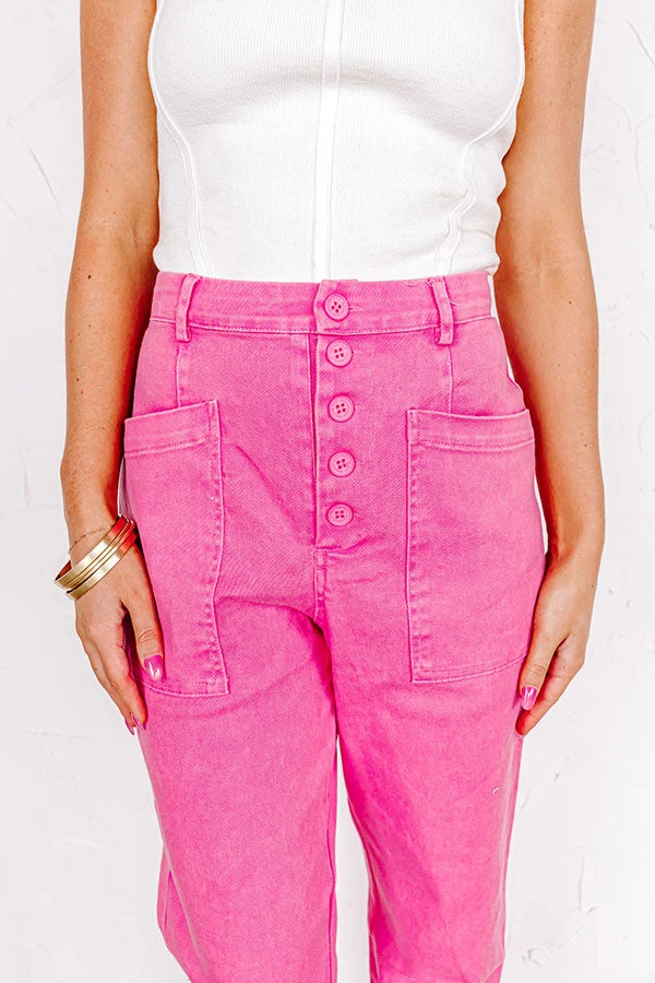 The Lari High Waist Button Up Trousers In Bubblegum Pink