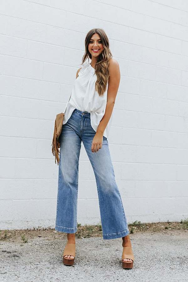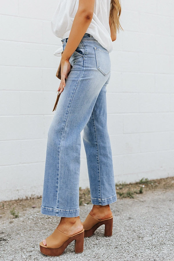 Our new favorite effortless summer denim just dropped! Our stylish ‘Wentworth’ jean featuring light wash material with subtle accent fading, a high waistline with belt loops, a classic five pocket cut, a hidden zip fly with a button closure, and a relaxed but flattering silhouette that falls into boot cut ankle-length hemlines!